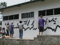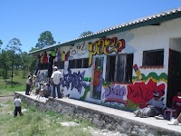En un principio tuve la oportunidad de trabajar personalmente, con pandilleros activos y realmente me di cuenta, que en algunos casos es casi imposible trabajar con ellos, debido a su apego por sus ideologías y por decirlo de alguna manera sus costumbres, que les impide regresar a una “normalidad” social, que los marginaliza, y convierte en personas con u resentimiento social, lo cual les hace restar importancia al resto del mundo, y eso me hizo desistir de trabajar con una población tan compleja, pero en nuestra organización: Walabis educación arte y lúdica, estamos trabajando con la técnica de Grafiti y muralismo, como herramienta de prevención de violencia, con Jóvenes del Valle de Amarateca, yo personalmente, trabajo con más de veinticinco jóvenes de varias comunidades del Valle, con el grupo de “Grafiteros de Amarateca” al principio escogí la técnica de escritura grafiti porque es muy atractivo para los jóvenes por su estatus ilegal y al límite de la ley (que mas quieren que les diga esta tumbado) y como en un principio trabaje con una población mixta jóvenes ex pandilleros, y jóvenes que han sido víctimas de las pandillas, que vale la pena recalcar su talento nato para el dibujo, los trabajo que realizamos como prueba, fueron bocetos de técnicas pandilleriles de rayado o plaqueado, los temas eran por lo general con motivos que reflejaban la violencia de la cual han sido protagonistas o espectadores, y se refleja en las dos muertes que tuve durante el proceso, de mural grafiti, me mataron dos de mis chicos Keka de 14 y Checha de 17.
